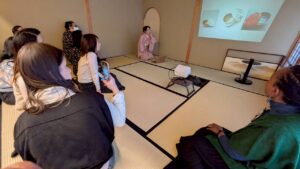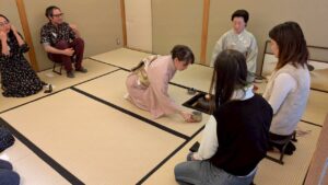 みんな、日本文化にも茶道にも歴史にも興味津々で、説明や先生のお手前に見入っていました。