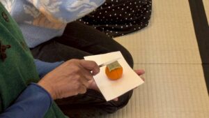 そのあと、茶菓子をいただき、先生のお点前からみなさんでお茶をいただきました。