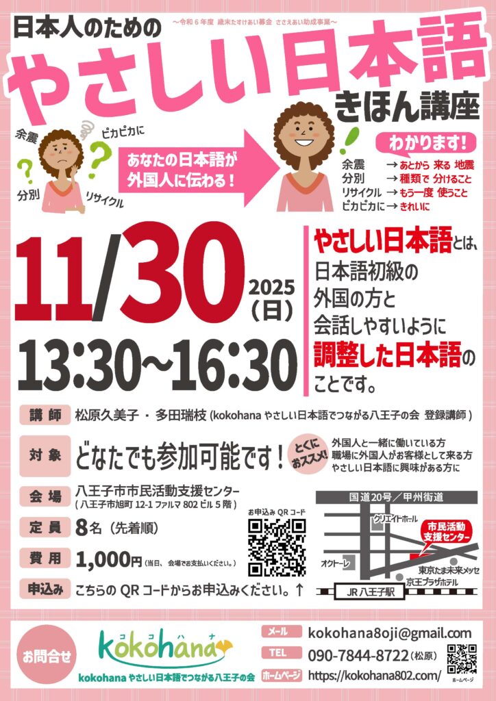 2025年11月30日(日)に『やさしい日本語きほん講座』を実施します。